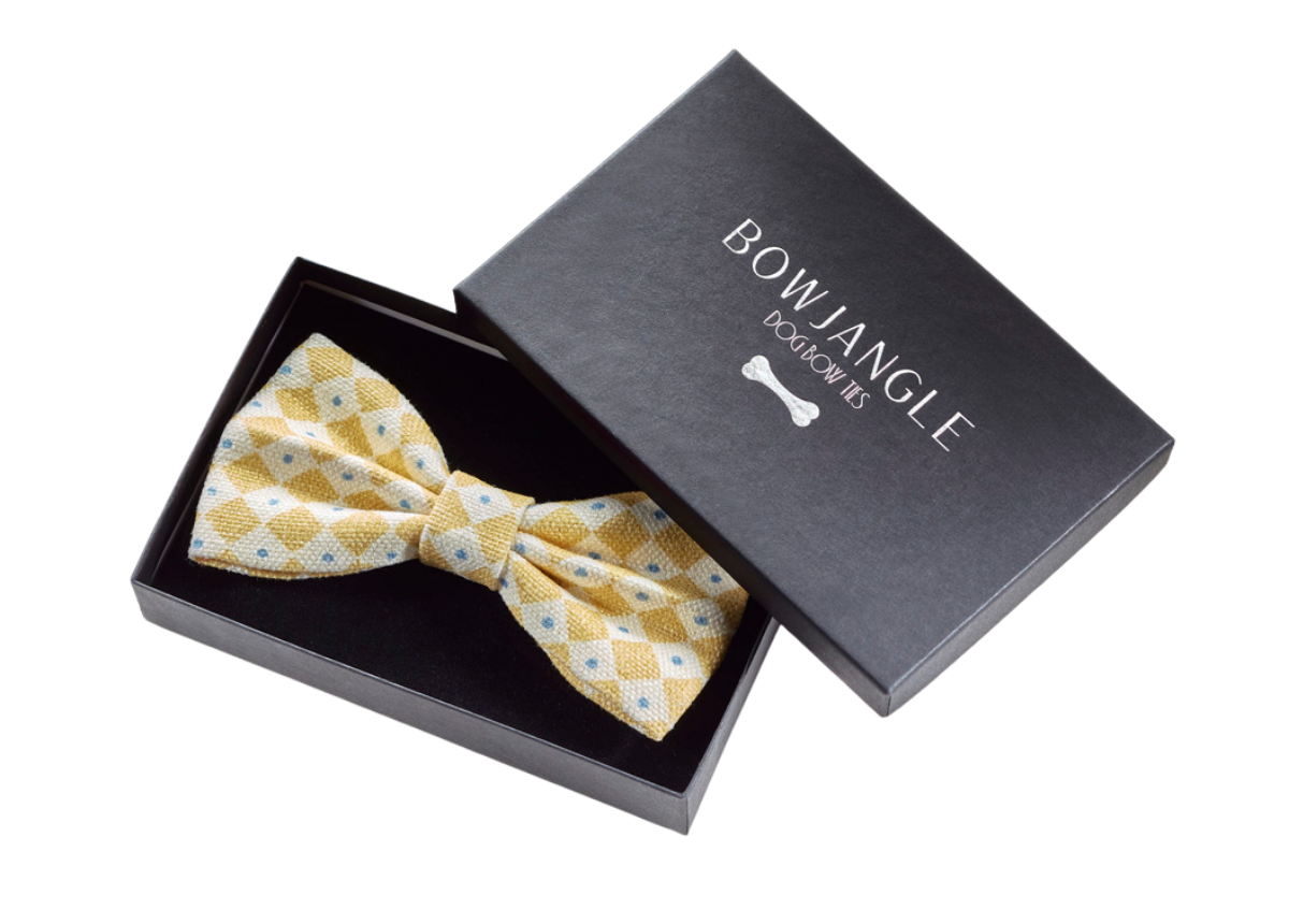 Your dog will look rather dashing wearing a Bowjangle tie.