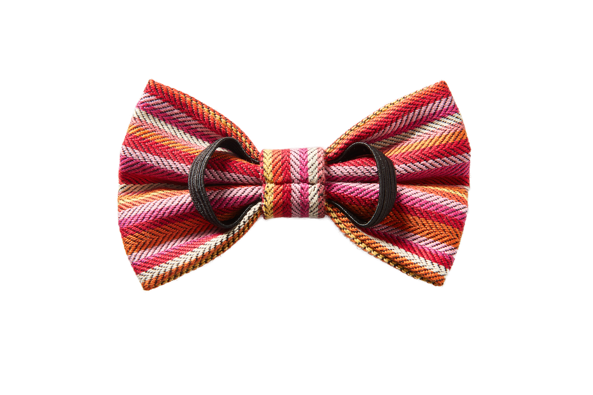 This pink and peachy orange striped mini bow tie is for those unafraid to make a statement.